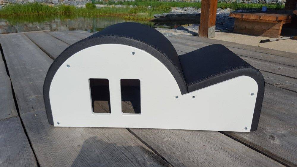 The spinecorrector manufactured by us is made with a multifunctional handle system dreamed up by Clara Pilates. Its design is very similar to the famous West Coast Step barrel, except the vertically cut handelss replace the external metal handles.