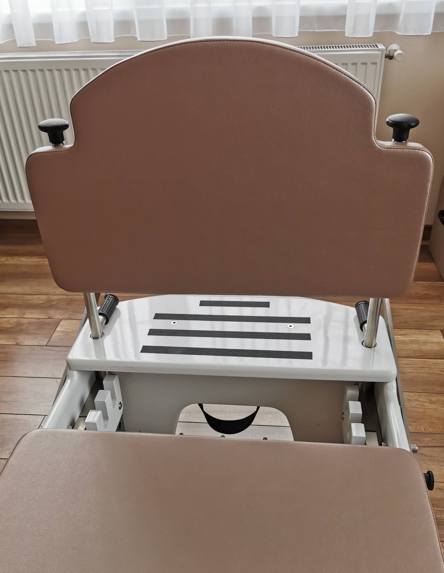 This space-saving equipment is a perfect solution in studios, it can even be an accessory for group sessions, as you can install several Pilates springboards onto the wall. For Pilates enthusiasts, the Pilates springboard is an easy and great way to add tower work to your workouts without having to invest in larger Pilates equipment. Hundreds of variations of more than 100 exercises can be performed with the two spring sets, bars and straps, and 22 hanging points.